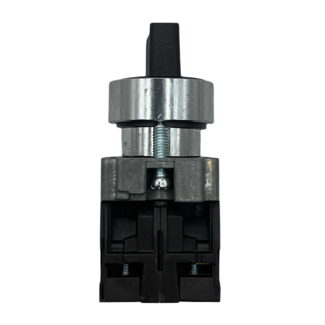 Chave seletora redonda para painéis elétricos, equipada com knob curto e 3 posições (esquerda – centro – direita), com retorno automático por mola nas posições direita e esquerda. O ângulo de comutação é de 45°, proporcionando acionamento preciso e rápido. Possui 2 contatos normalmente abertos (2NA), indicada para comandos momentâneos em sistemas de automação industrial. Conta com grau de proteção IP40 e certificação UL, garantindo confiabilidade e segurança na aplicação.
